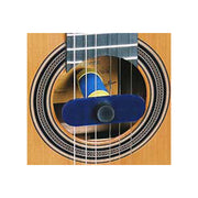 Like other "sound hole" humidifiers, Oasis fits between the strings of your guitar. The materials that touch your strings are relatively soft and wont scratch. A blue polyurethane stabilizing bar fits over the neck of the humidifier. Once positioned in the sound hole, the stabilizing bar lies across the guitar strings to ensure even weight distribution. The Oasis Guitar Humidifier never touches the body of your instrument.